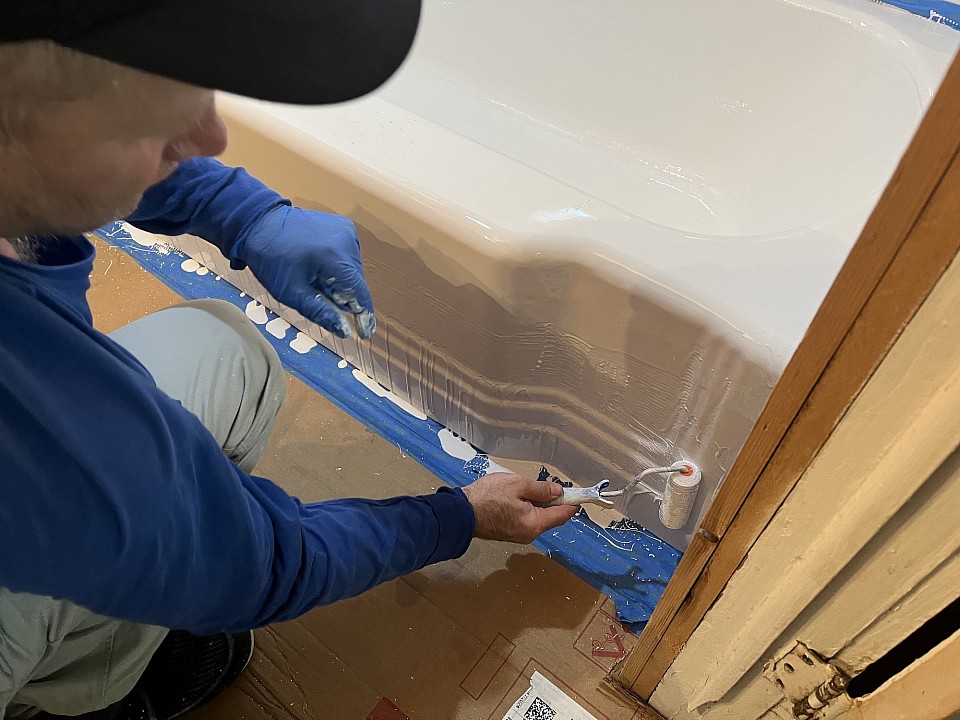 We remove the old acrylic layer along with other materials, that were used to mount the bathtub liner and silicon. After thoroughly cleaning the bathtub and repairing all defects, we apply a new adhesive eco-friendly durable material.
