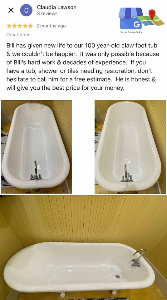 - “… new life to our 100 year-old claw foot tub & we couldn't be happier…only possible because of… decades of experience…” - Claudia Lawson, San Antonio ⭐️⭐️⭐️⭐️⭐️ 🌍 View this review on Google